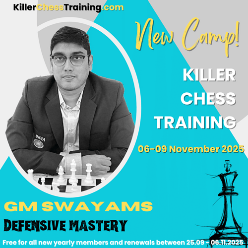 We will have a new online camp with GM Swayams in November, on defense. The camp will happen between the 6th and the 9th of November and will include a total of 12 hours. The recordings of the camp will be made available to everyone who will buy the camp or receive it as a welcome gift.