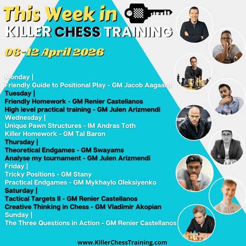 The schedule for our in-person camp is now available on the website. The general theme of the camp will be Attack and lecture will cover the following themes: Momentum, Include all the pieces in the attack, Color themes, Material, Attack the weakest square, Attack the strongest square, Evolution/ Revolution, Kill Zone. Finally, we will end the camp with a session on How to continue at home.