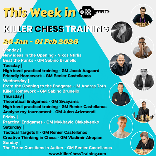 There will be two High Level Practical Level classes this week. The first one will happen tomorrow, the 27th of January, from 12:30 PM UK time, with GM Jacob Aagaard. The second one will be held by GM Renier Castellanos on Thursday, the 29th of January, from the same time.